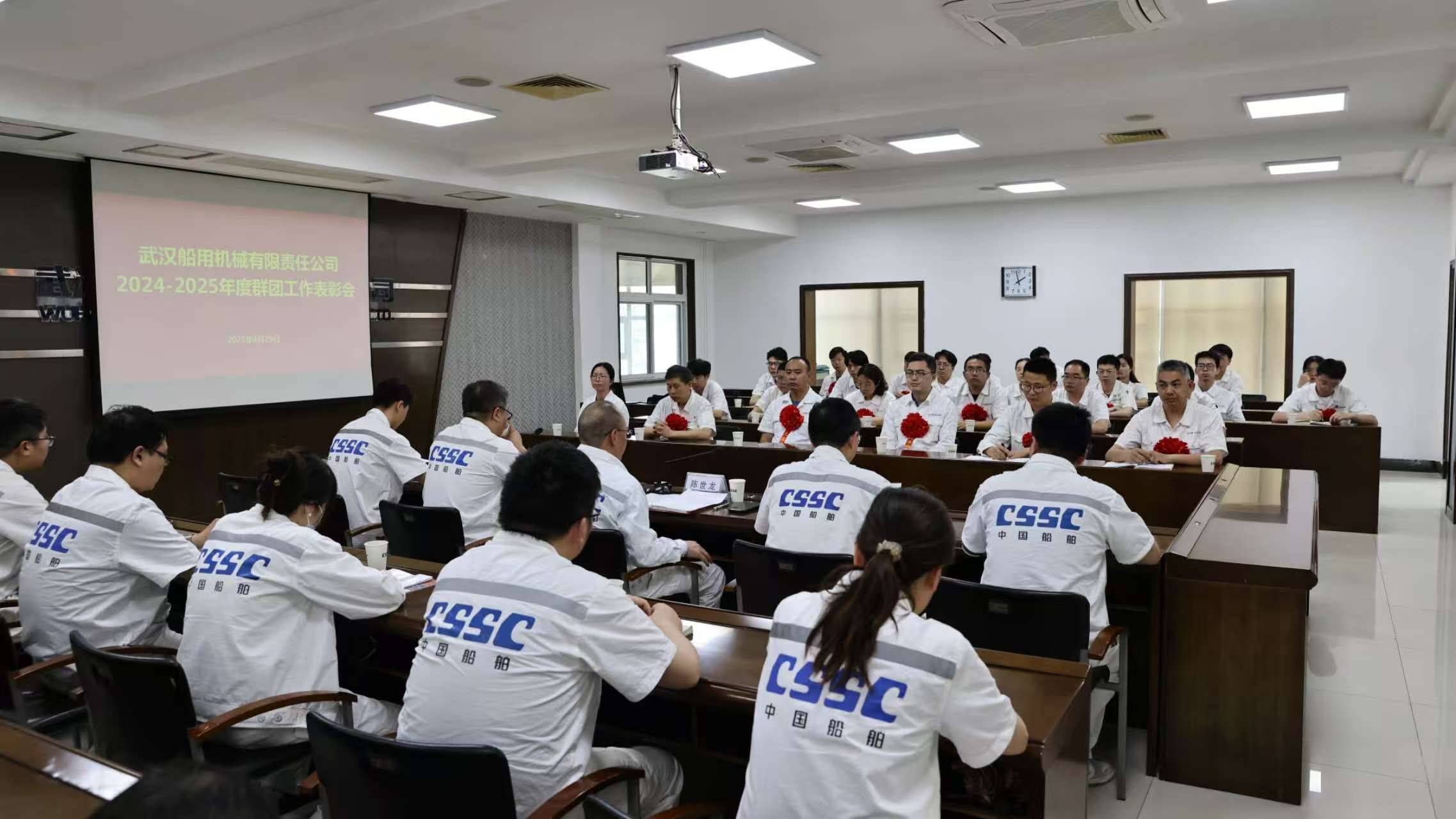 4月29日,中船集团武汉船机召开2024-2025年度群团工作表彰会,传达学习习近平总书记在庆祝中华全国总工会成立100周年暨全国劳动模范和先进工作者表彰大会的讲话精神,对公司工会、共青团先进集体和个人代表进行表彰。公司党委委员、总会计师、工会主席陈世龙出席会议。